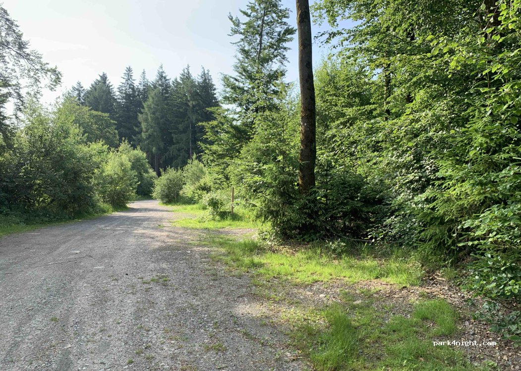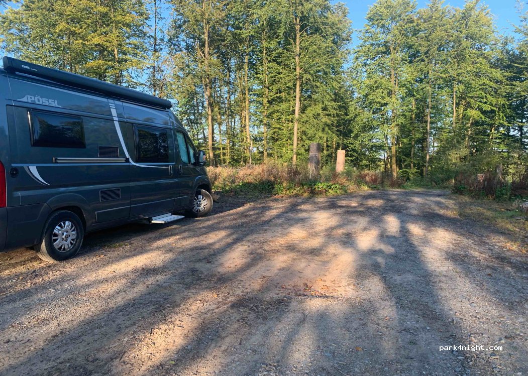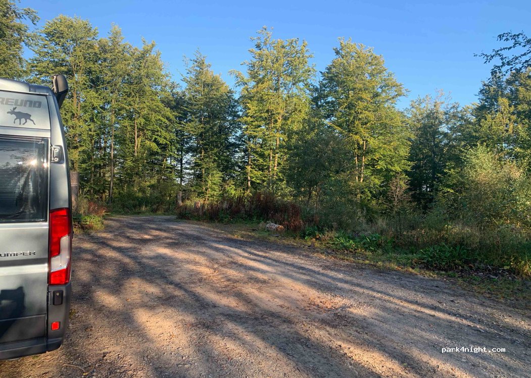 Parking forestier/de randonnée à proximité du Forsthaus Hohenroth. La route à proximité est limitée à 40 km/h, on peut donc parfois entendre les voitures, mais ce n'est pas gênant. Sinon NATURE. En automne, vous pourrez écouter le brame des cerfs :-)