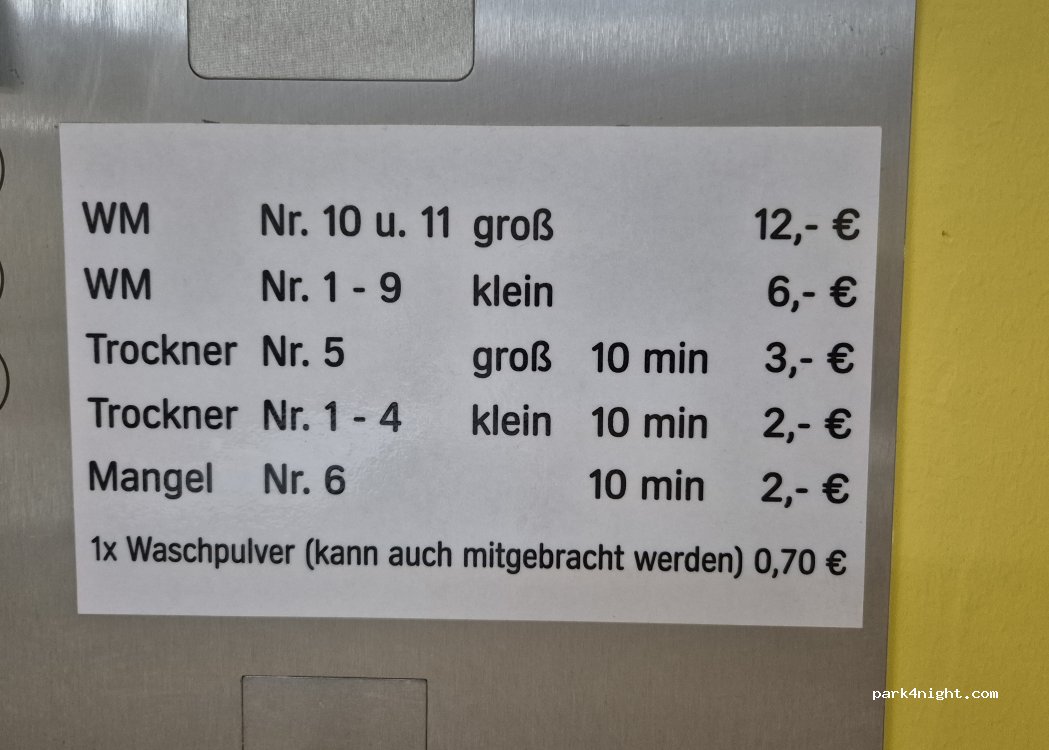 Reichlich Maschinen vorhanden. Zufahrt für große Mobile auf KEINEN FALL geeignet!! Keine Kartenzahlung, nur Münzen!