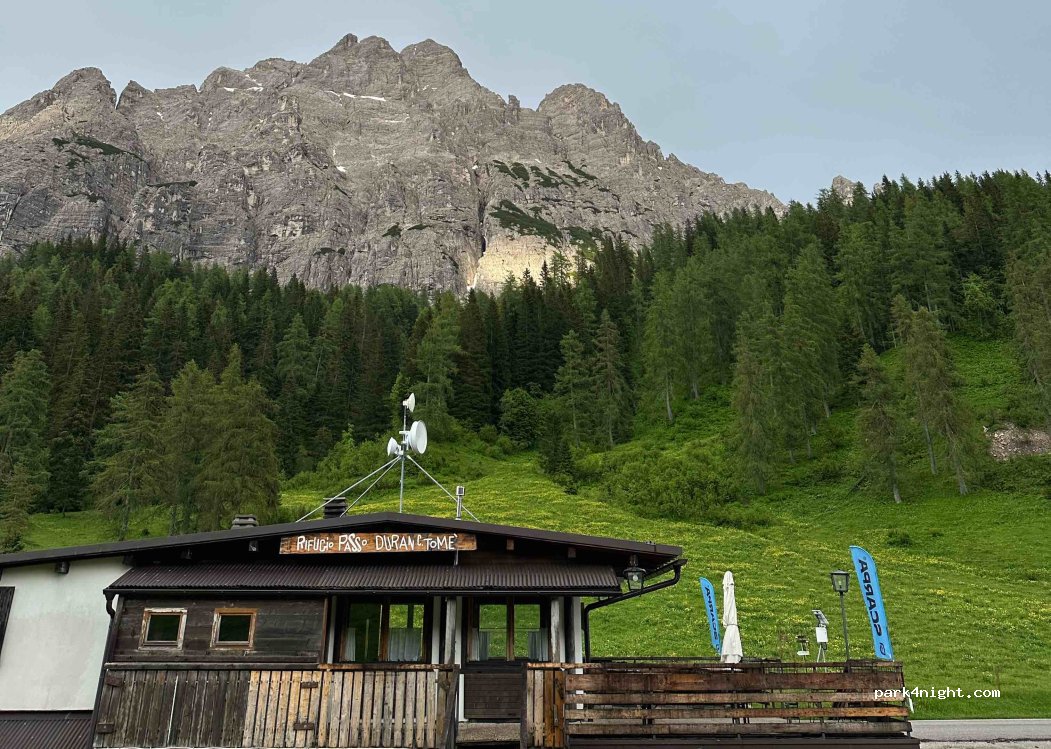 Perfekter Ort, auf dem Gras direkt über der Straße. Wir haben hier eine Nacht verbracht und konnten gegen eine geringe Gebühr im Rifugio in der Nähe duschen. Wir hatten auch ein tolles Abendessen im Rifugio C.Tome, sie sind super freundlich! Der Pass ist nicht überfüllt und die Aussicht ist unglaublich