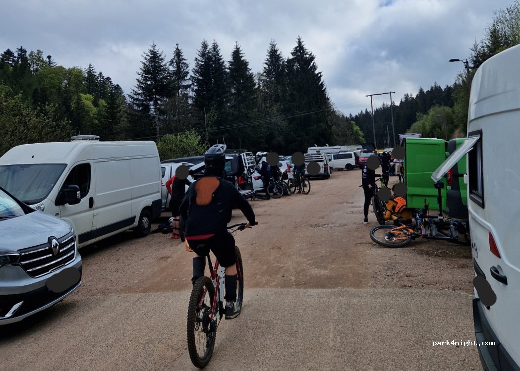 2 grands parking au départ du bike park en bas de la remontée mécanique. week-end agité quand le bike park est ouvert mais ça reste un bon endroit pour se poser .