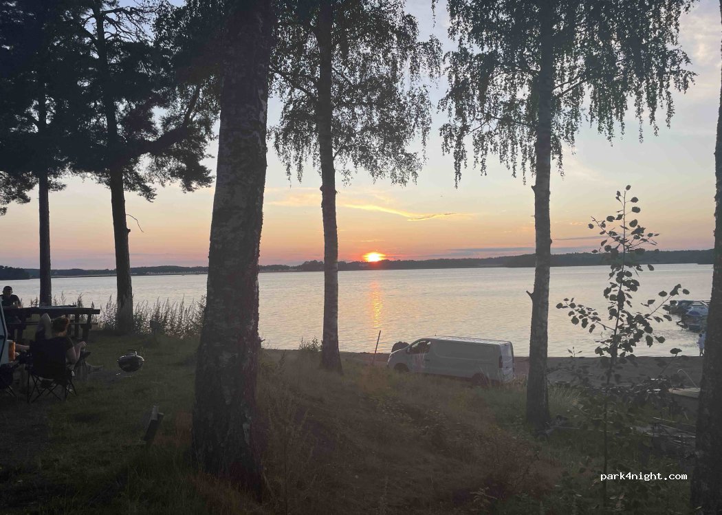 Im September ist es hier sehr ruhig. Stellplätze mit Seeblick, Spielplatz und Strand vorhanden. Tolle Bootsstege mit Sitzmöglichkeiten. Einziger Minuspunkt ist der Preis. 310 Skr ohne Strom. Aber Platz ist auch für größere Womos geeignet.
