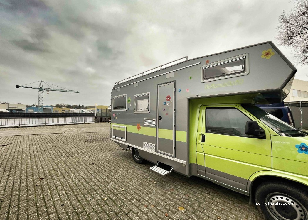 Een prima plek.Uitzicht op de weser.Ook industrie tegenover.Vanaf 16.00uur stil.Er loopt een fietspad hier langs het water.prullebakje aanwezig.Al met al een prima plek.