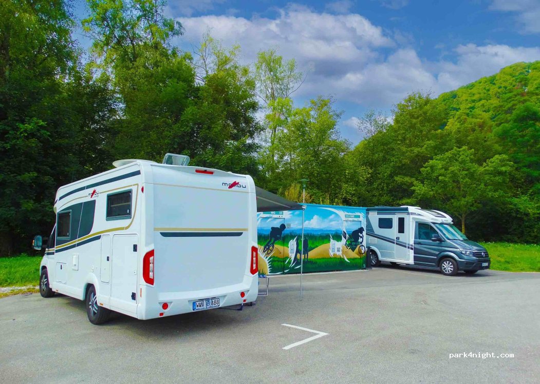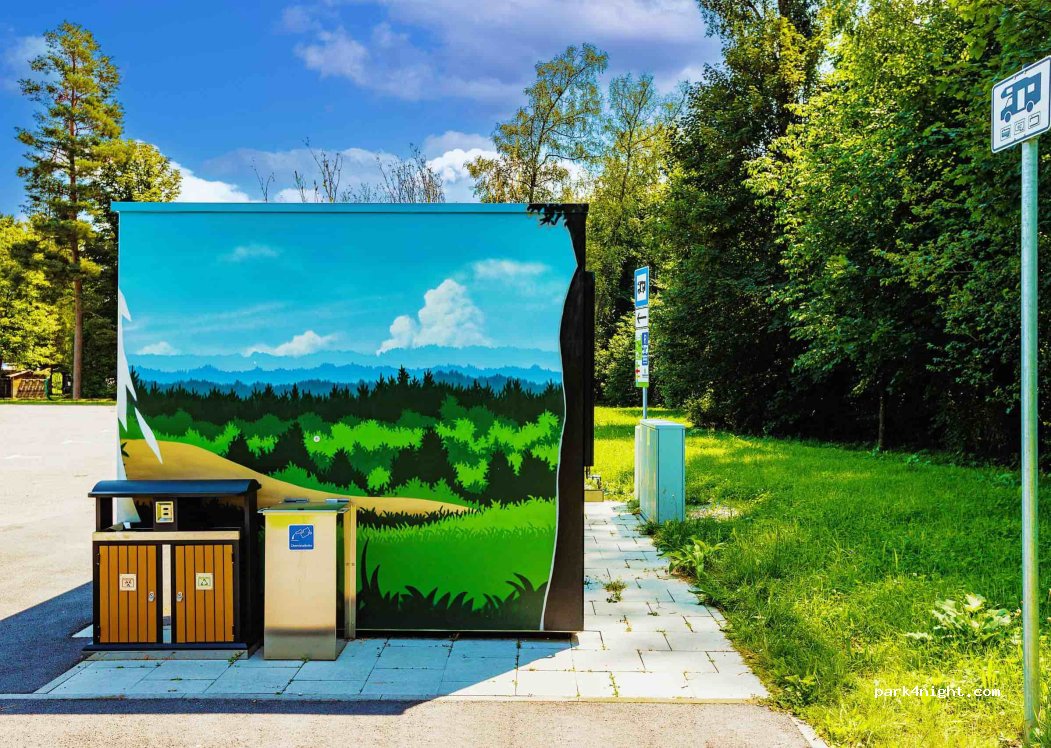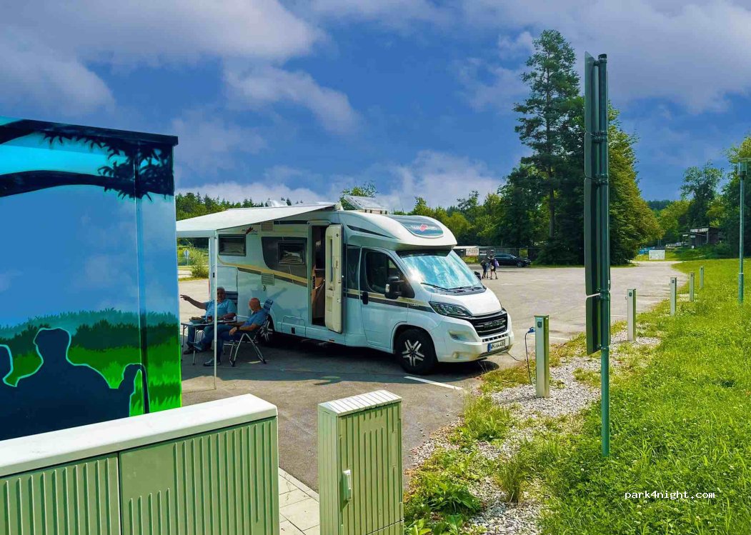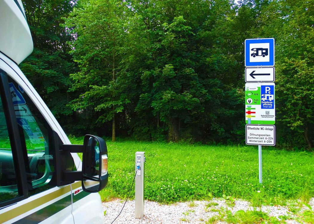 Amenities at the illuminated RV park include free drinking water, as well as free disposal of on-board toilets and gray water. Public restrooms with hand basins are also available, which are also accessible for guests with disabilities, as well as a changing mat for small children.