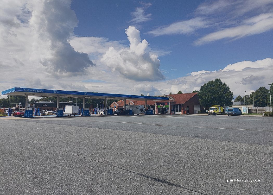 Simple Parking were trucks take break for the night. Aral station available and Mcdonalds