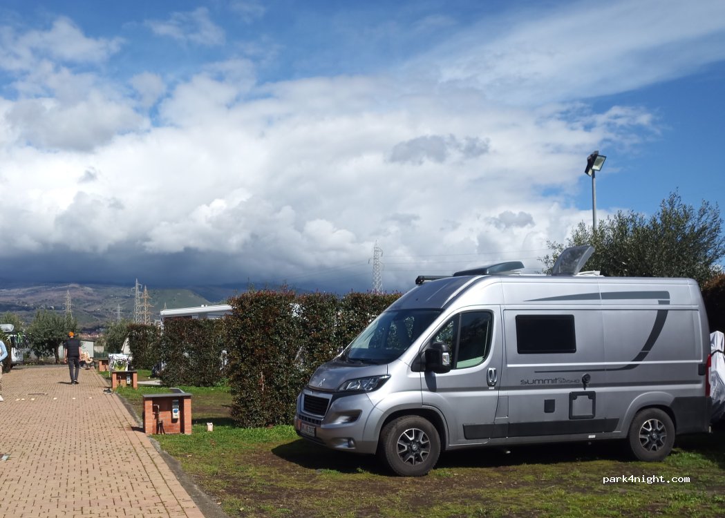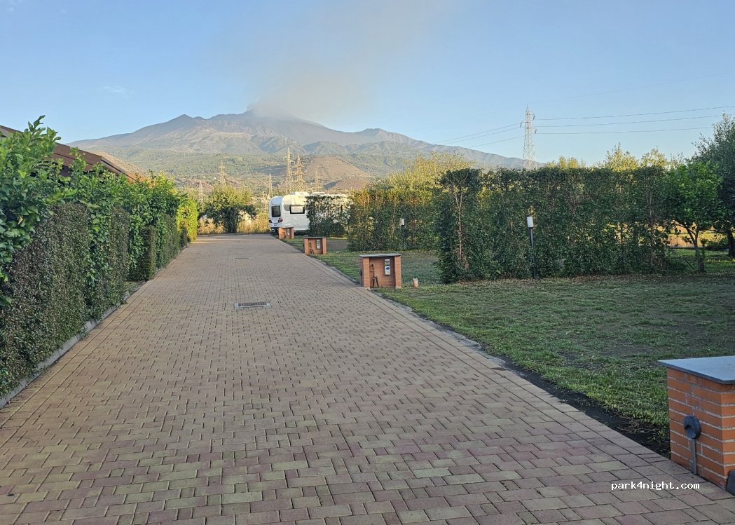 Schön gelegener Platz mit 2 schönen und geräumigen Stellplätzen am Ende der kleinen Gasse. Leider liegt dort die Entsorgungsstation unglücklich. Die anderen Plätze sind für große Mobile zu klein. Sanitäranlage bestens und sauber. Schöner großer Pool mit Liegewiese. Das beste ist der freie Blick auf den Ätna besonders wenn er im Dunkeln Lava spuckt. Restaurant hatte leider noch geschlossen.