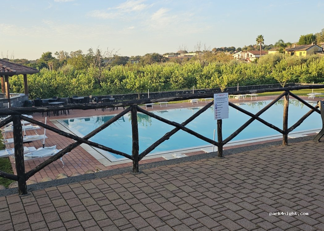 Rigtig fin campingplads. Gode faciliteter, rene toiletter, et lille køkken, hvor man kan lave mad og vaske op. Morgenmaden var udemærket, men ikke noget at anbefale. Der er fin udsigt til Etna og poolen er meget børnevenlig og i sol hele dagen. Knap så natur-idyllisk, men rigtig nemt at komme til fra Catania lufthavn.