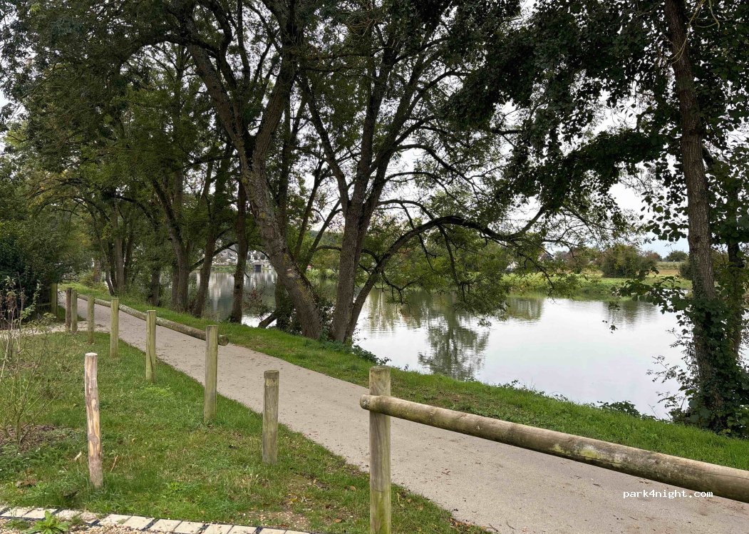 Gravel and lawn area on the banks of the Cher. Located between a campsite and a paid motorhome area with services. Calm and peaceful in the heart of nature. Height limited to 2.40m, allowing access only to small vans and vans.