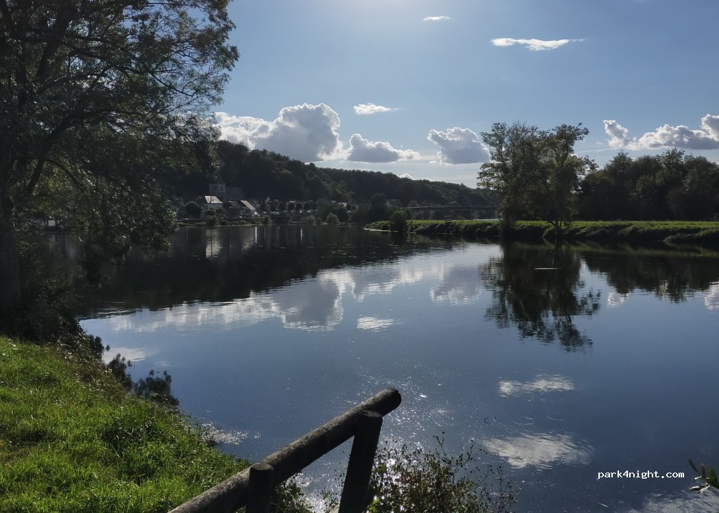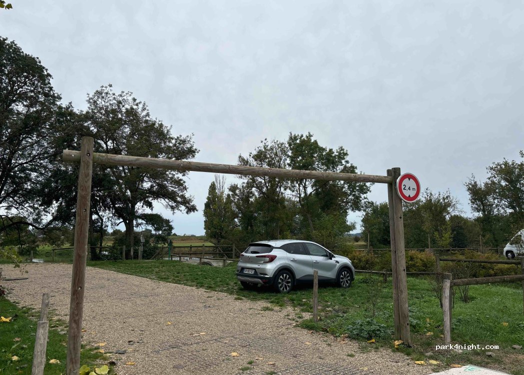 Mit Kies und Rasen angelegter Bereich am Ufer des Cher. Liegt zwischen Campingplatz und kostenpflichtigem Wohnmobilstellplatz mit Serviceleistungen. Ruhig und friedlich im Herzen der Natur. Die Höhe ist auf 2,40 m begrenzt, so dass der Zugang nur für kleine Transporter und Lieferwagen möglich ist.