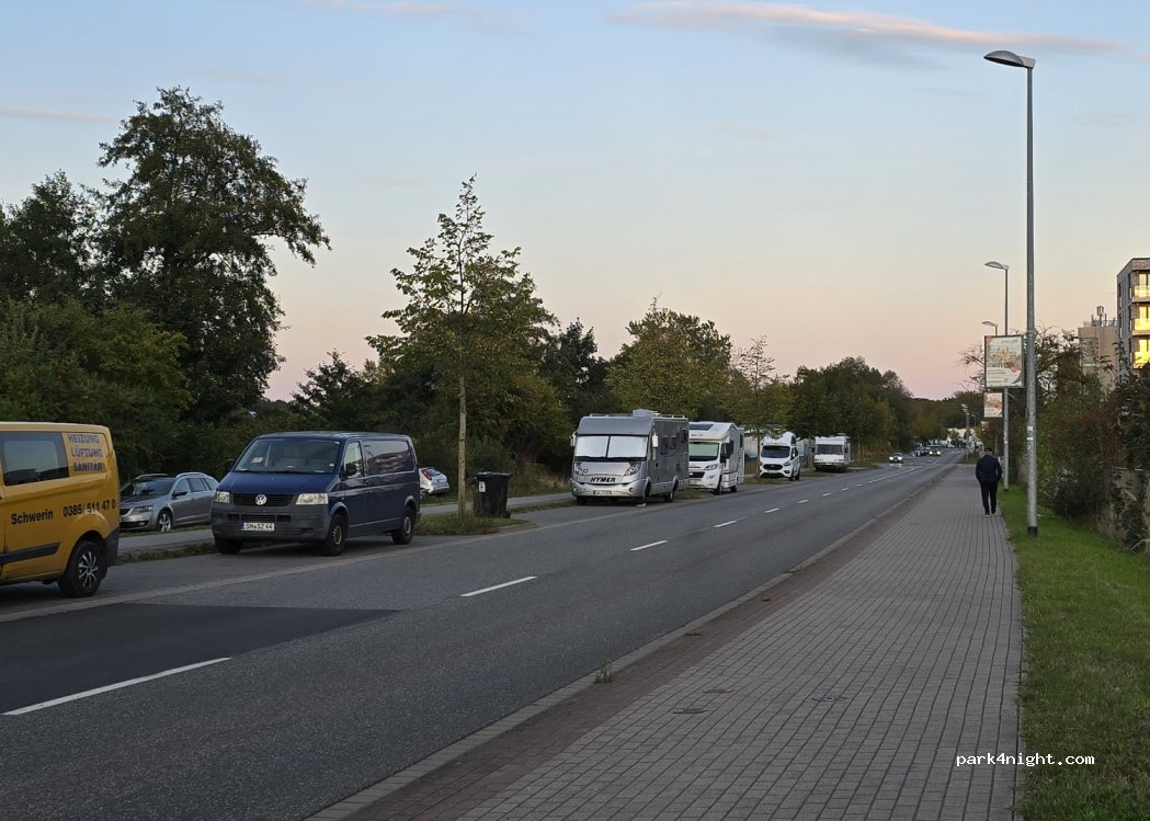 Der Parkstreifen ist bestenfalls für eine Stadtbesichtigung zu empfehlen, wenn er nicht bereits durch Berufspendler zugeparkt ist. Für eine Übernachtung ist er völlig ungeeignet. Man steht, mit Neigung zur Straße so dicht an der viel befahrenen Straße, dass jedes vorbeifahrende Auto den Camper rüttelt und schüttelt und man Angst um seinen Spiegel haben muss. Für mich bleibt es bei einem einmaligen Versuch, dort zu übernachten.