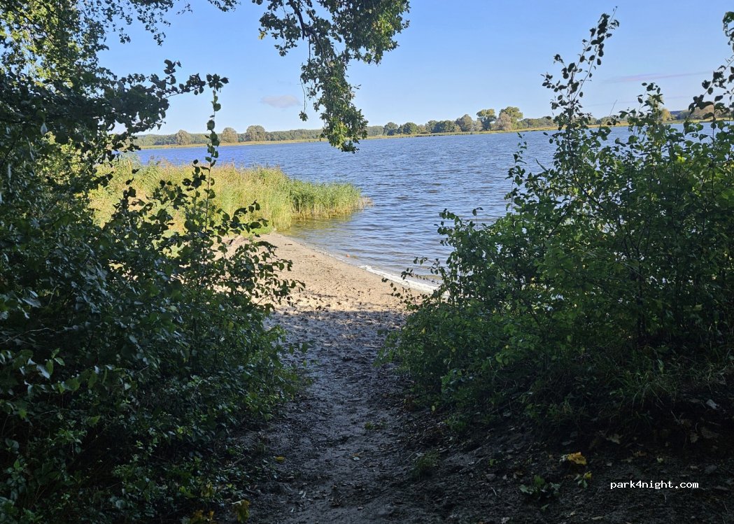 Total abgeschieden mitten in Wildnis, mit einem kleinen privaten Strand Zugang. Gerade für ein Wochenende zum Entspannen und runter kommen perfekt aber auch für Familien wie wir mit Kleinkind und großen Hund total schön. Man hat hier definitiv seine Ruhe, die Anfahrt ist eine alte LPG Straße und etwas holprig aber auch für große Autos (haben selber einen ca 8m camper)gut geeignet. Ab und zu trifft man mal ein Angler.