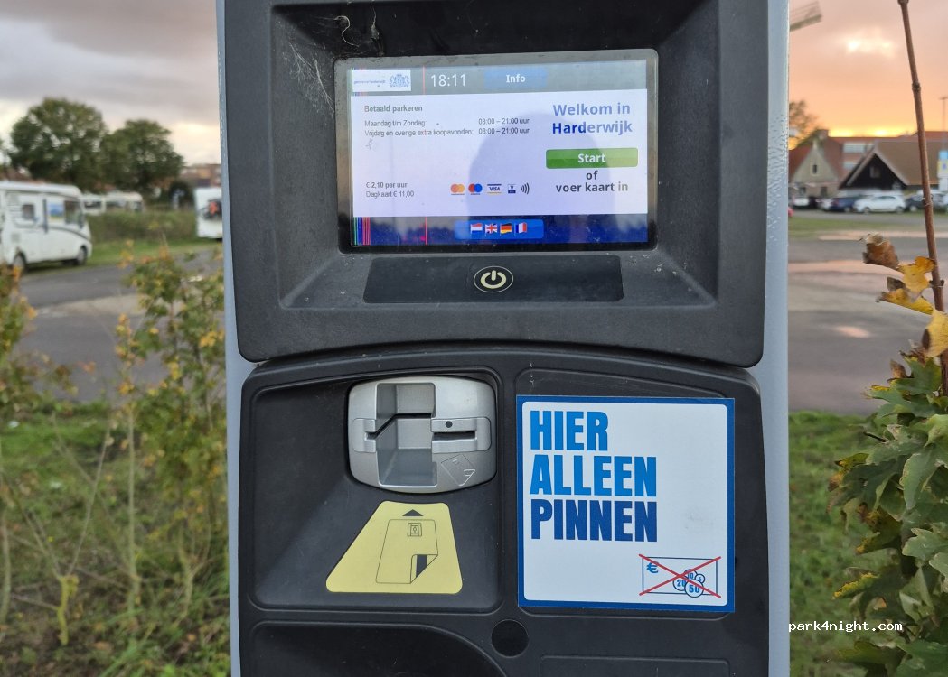 je kunt alleen een dagkaart kopen voor 11 euro. de volgende ochtend moet je dus sowieso opstaan om 8 uur om een nieuwe dagkaart te kopen of wegrijden. ZO NIET GEMEENTE HARDERWIJK nooit meer dus zolang dit zo blijft. wij zijn niet op de vlucht of zo