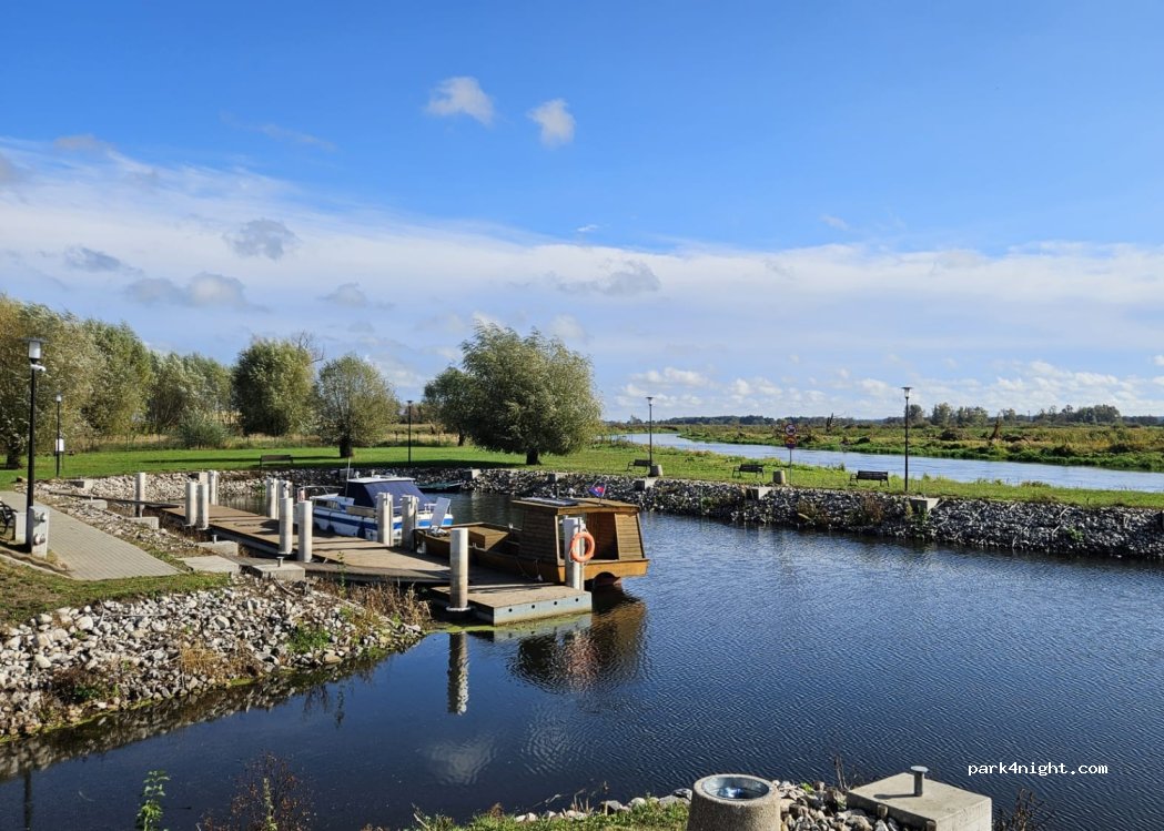 A nice, quiet spot with beautiful views of the Noteć River confluence with the Warta River and a low price (PLN 35 per camper without electricity, without occupancy: 2025-09). Plenty of grassy space, benches, fire pits, and peace and quiet (Dino market). The restrooms are average, but there's hot water and housekeeping. The marina office hours are poor (Mon-Fri until 3:30 PM, Sat-Sun until 6 PM).