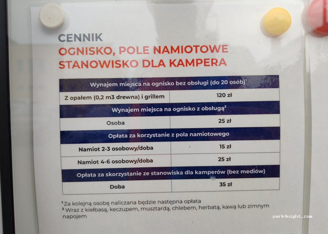 35 pln for one rv + 25 pln/person without electr.