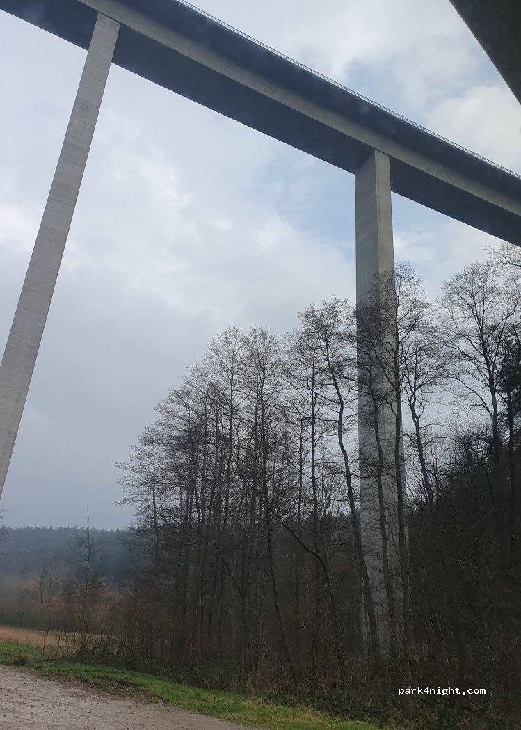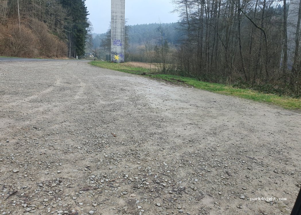Einfacher Parkplatz unter der BAB Brücke. Ideal zum Wandern und Erkunden der Genoveva Höhle über über den Römerpfad.