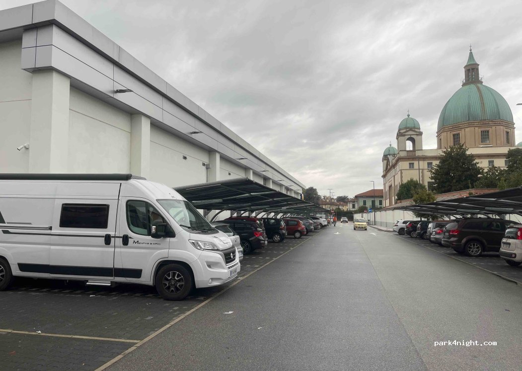 Rear section of the Lidl parking lot. Free. No barrier. Flat. Ideal for visiting Lucca without paying for parking and staying overnight. Spaces are fairly tight, but most cars don't park at the back.