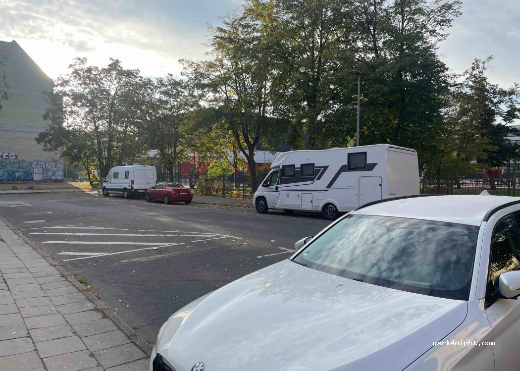 Parking disponible dans le centre-ville de Leipzig. Terrain un peu accidenté, mais tout à fait suffisant pour la seule nuit où nous étions ici. Relativement calme, car il y a l'université et une salle de sport à côté.