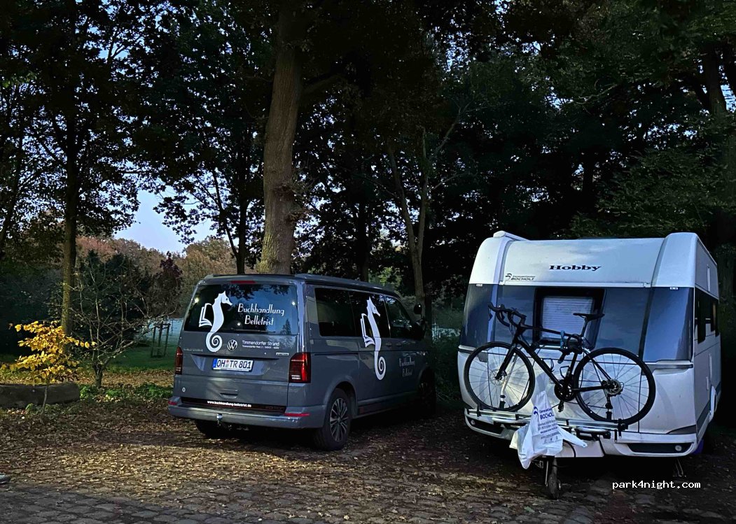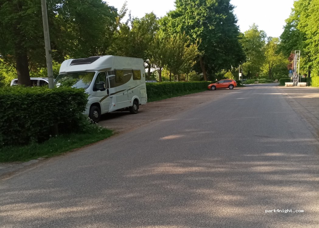 Die Parkbuchten sind hier für PKW ausgelegt, dementsprechend muss man sich mit Wohnmobil so stellen, wie es am besten passt. Habe hier übernachtet und mich sicher und gut gefühlt. Nachts ruhig, morgens Vogelgezwitscher und ein paar Autos oder Müllabfuhr. Die vielen Wander- und Radwege umgeben von Wald und Wiesen sind sehr einladend.