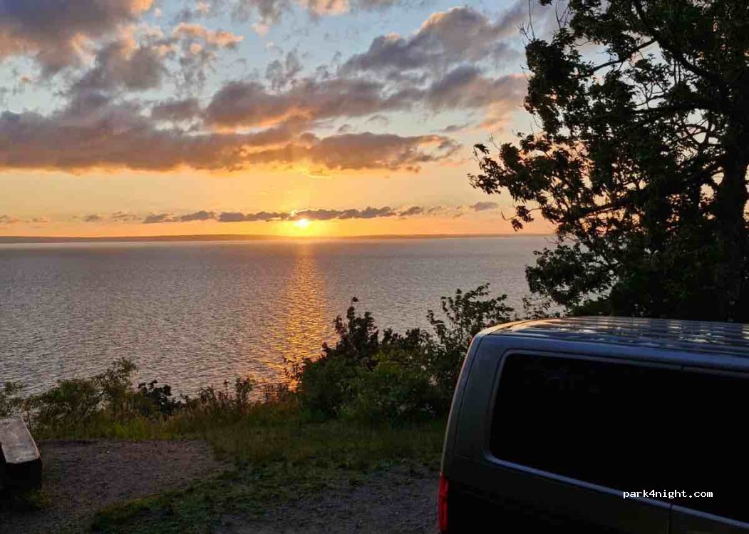 Place a côté de la route. Parfait pour contempler le coucher de soleil sur les tables de pique-nique. Très peu de passage la nuit. Endroit parfait pour dormir calmement. Attention aux tiques lors de balades, le coin en est infesté.