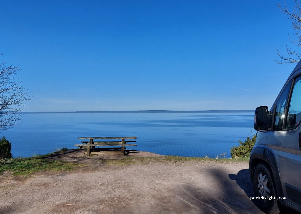 Deze hoog boven het Vättern gelegen camperplaats biedt een fantastisch uitzicht. Bereikbaar over een vrij smalle weg (grotendeels éénrichtingsverkeer). Ruim plaats voor 3 campers. Twee picknickplaatsen. In de nacht totale rust.