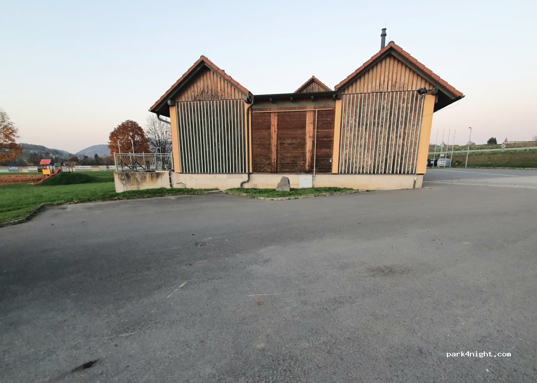 Sports center and large children's playground Merkendorf - flat, asphalted parking spaces (please park at the very back, by the meadow, so as not to disturb anyone). Only stay for a maximum of 1 night and move on if there is already a camper here.