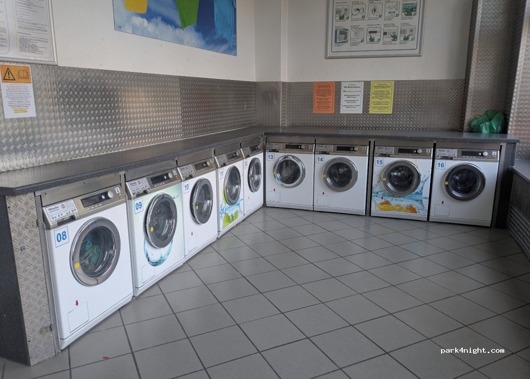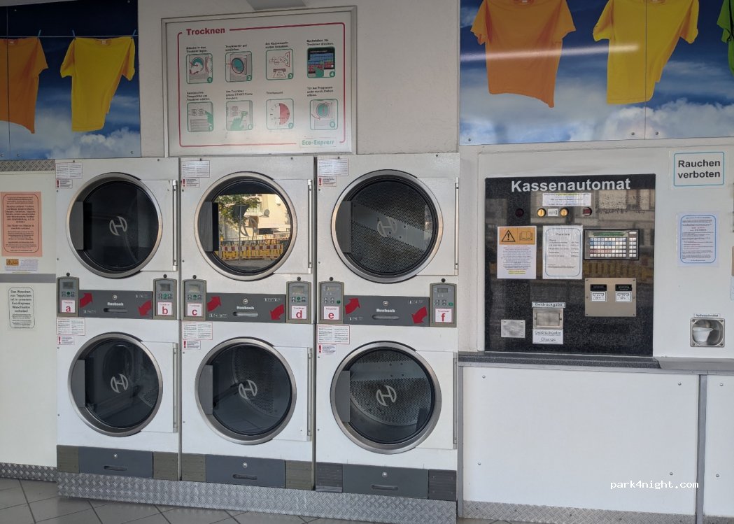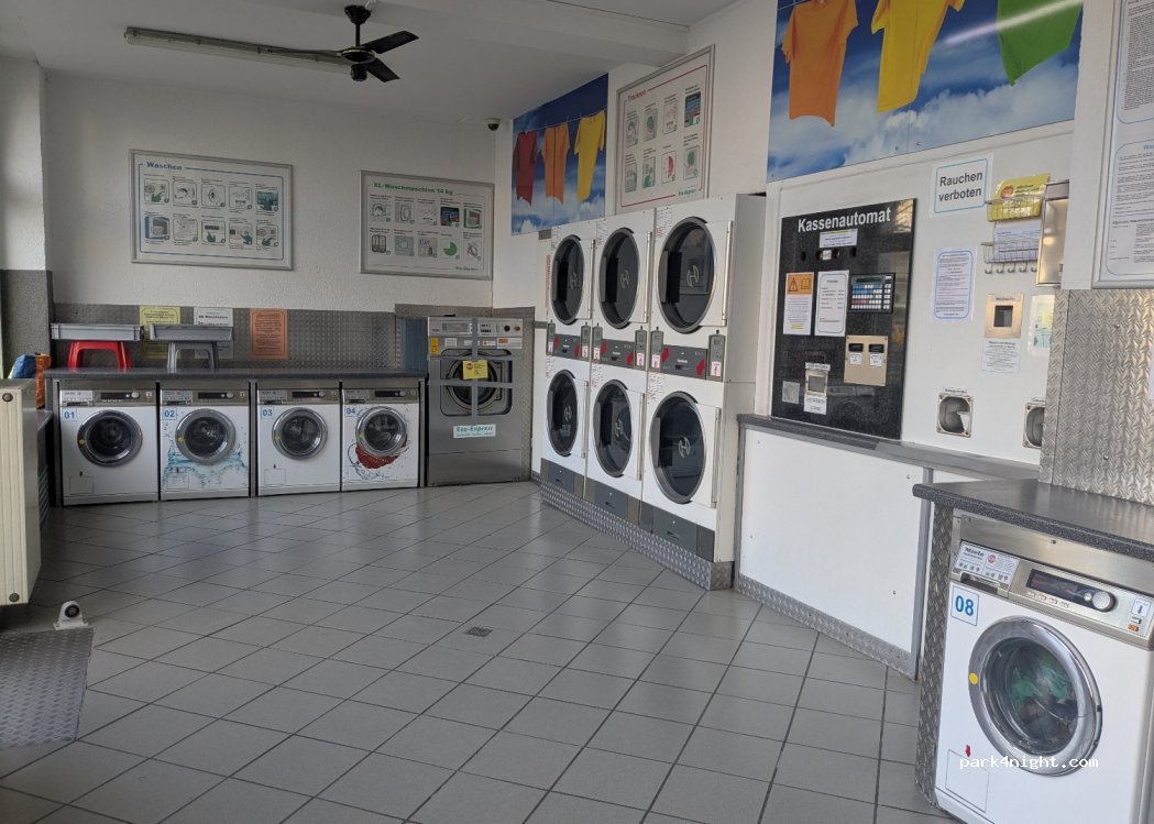 Barzahlung (Münzen und 5-10-Euro-Scheine, Wechselgeld wird am Automaten ausgezahlt. Waschmittel nicht im Preis inbegriffen, kann aber für 0,50 € gekauft werden.