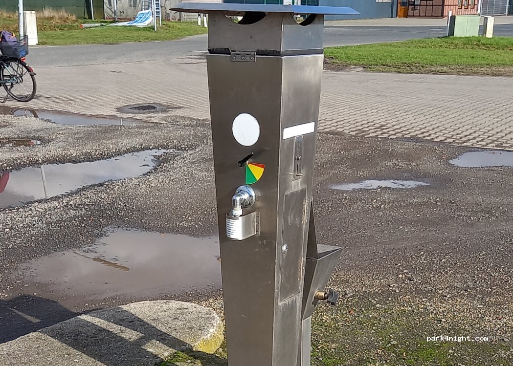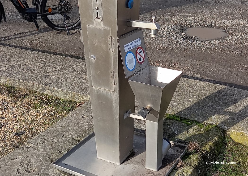 Zur Entsorgung der Bordtoilette gut geeignet. Wasser zum Säubern kostet 1 Euro und man ist diesen Ballast wieder los. Verkehrsgünstig in der Nähe der Autobahn.
