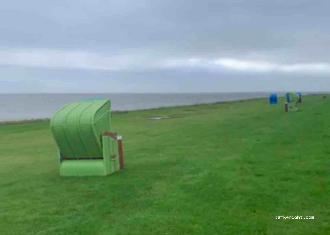 Parkplatz am Deich, Leuchtturm ist in der Nähe, Hundestrand, und ein paar Strandkörbe. Es gibt kein Verbotsschild, aber scheint eher ein Tagesparkplatz zu sein, wir wurden trotzdem 1 Nacht geduldet, evtl. weil es um diese Zeit hier sehr ruhig ist. Gleich hinter dem WC gibt es ein nettes Café.