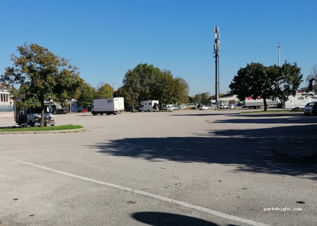 Buon parcheggio tranquillo, anche se potrebbe capitare che di notte i camion parcheggiati partano per i loro viaggi. A circa 20 muniti a piedi dal centro.