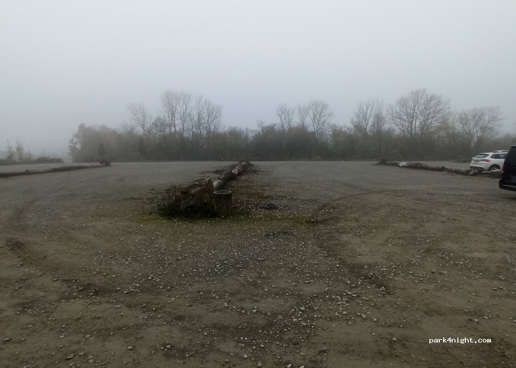 Large gravel parking lot next to the fitness center. Also suitable for very large campers. Good satellite reception, motorway within earshot, ideal for a stopover.