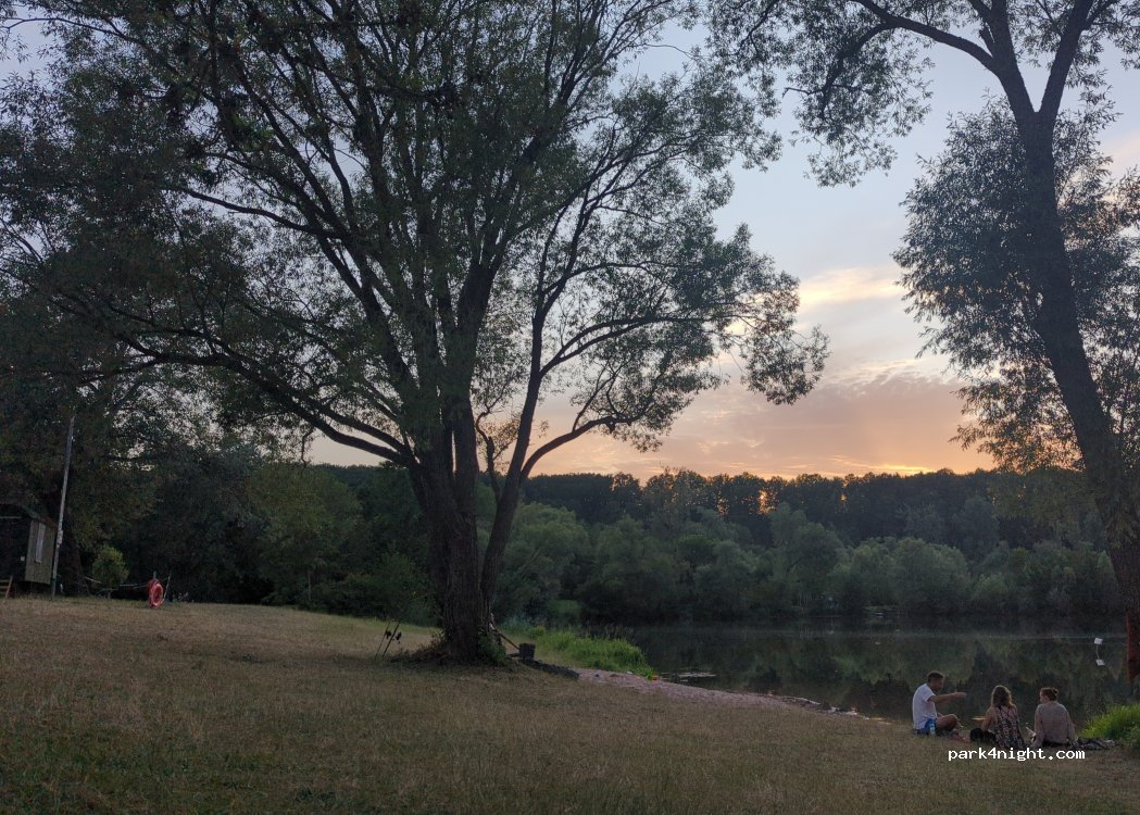 Es ist kein Nachtwächter sondern der Pächter des Sees. Übernachten nur mit dessen Genehmigung. PKW Gebühr 3.50€ und 1€ fürs Baden.