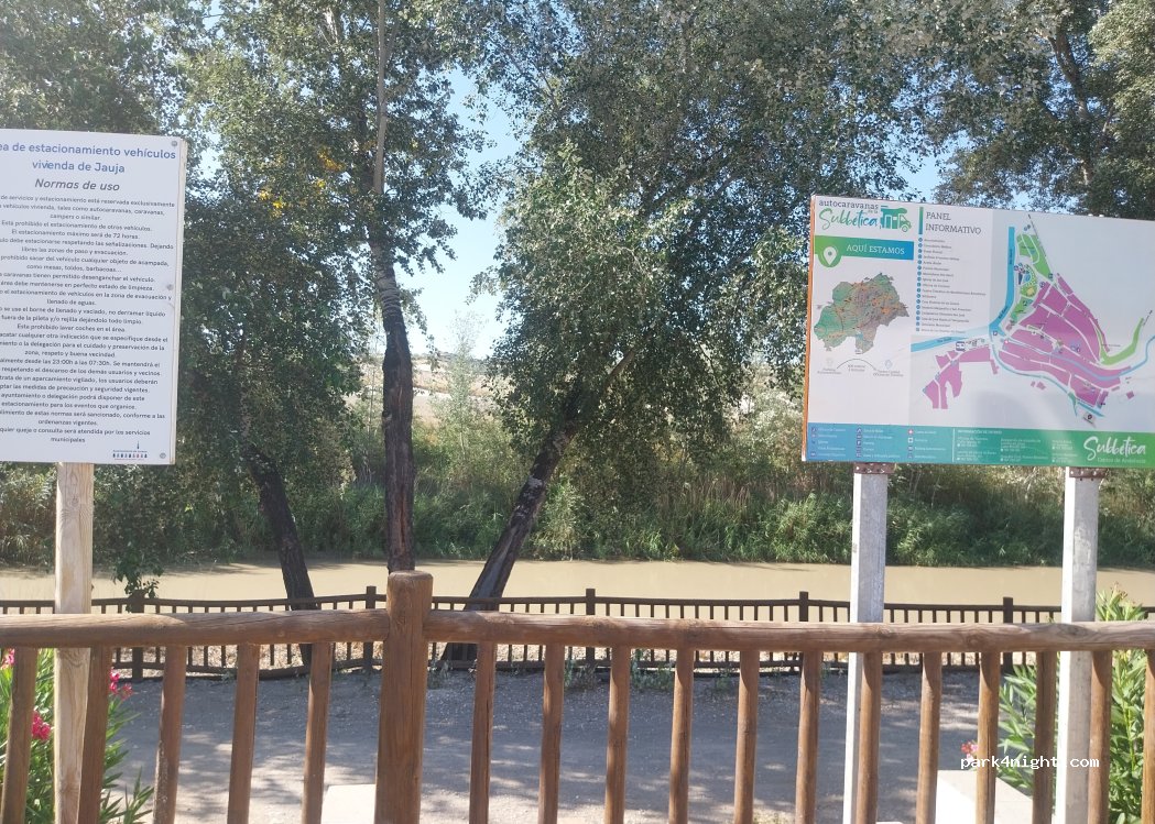 Quiet by the Genil River. The motorhome services are under construction, you can stay overnight in the city for an aperitif and essential shops (Romero bar, above all) at a very reasonable price. We have been coming for years, and now with the new area... will we continue coming.