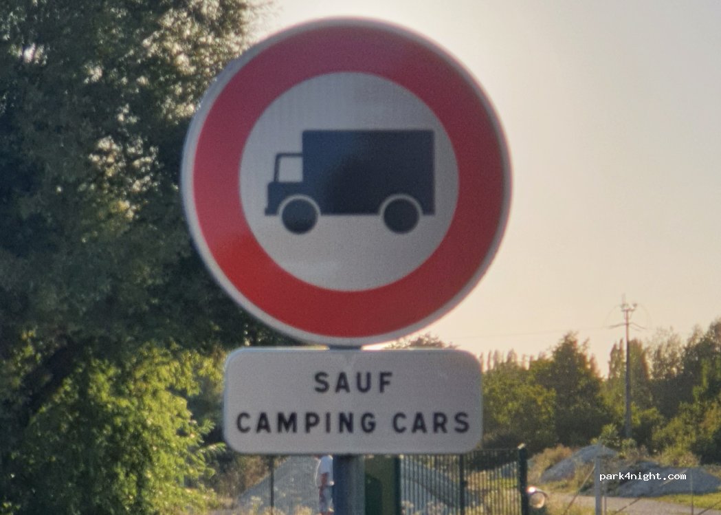 Je contredis un commentaire précédent, ON PEUT passer la nuit, il faut continuer sur le chemin et l'emplacement est sur la gauche, très spacieux avec sac à popo pour les chiens, merci à la commune de penser à eux