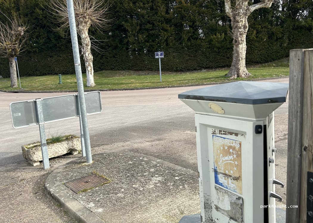 Aire sympa en dehors du centre ville prévoir d'acheter sur le parcours un jeton à 2,50 € pour le ravitaillement en eau, achat possible au tabac ou à la mairie ou à la boulangerie (attention fermée le lundi) borne Euro Relais et vidange eaux grises à disposition, aire située à environ 15 mn des magasins d'usine de Troyes