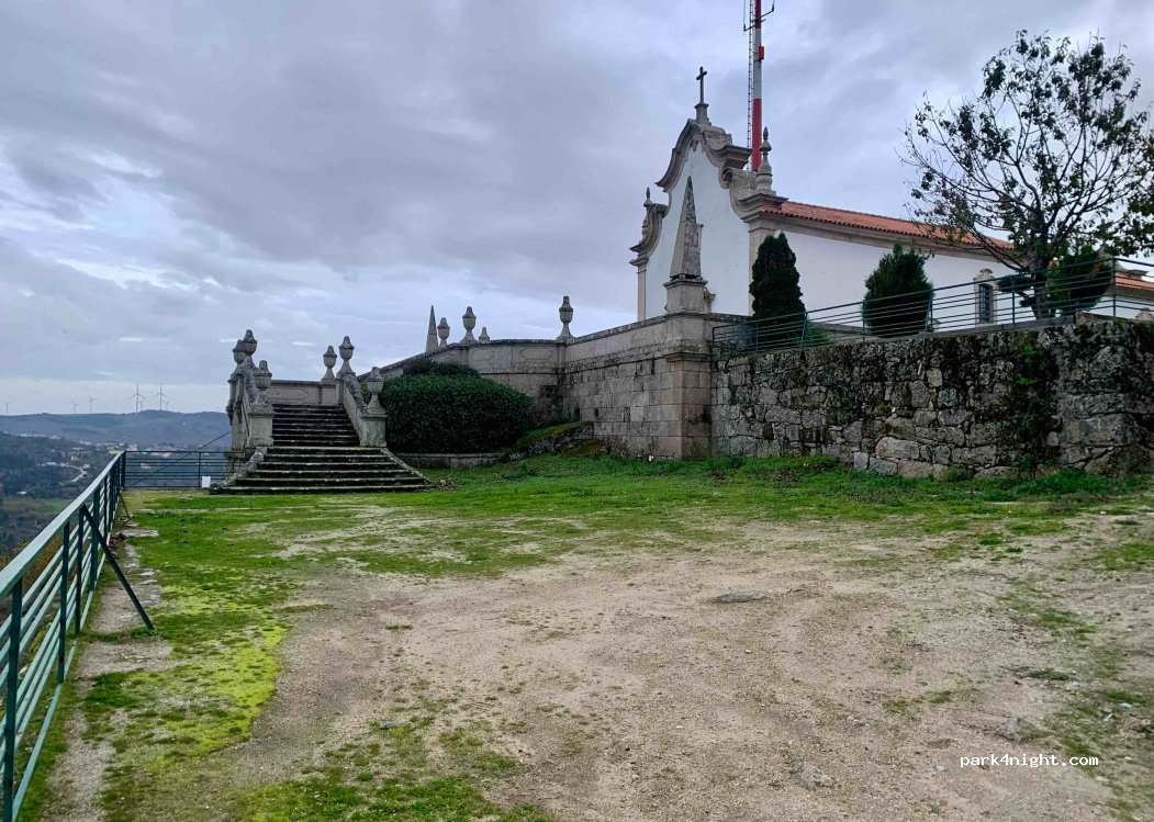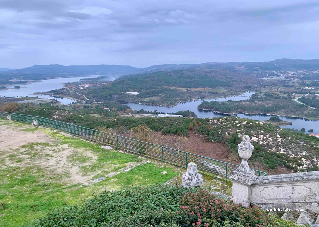 270* Panorama principalmente al N, que abarca la presa de Távora y los pueblos de los alrededores, junto a la capilla de “N Senhora das Necessidades” (supuestamente iluminada por la noche). Se accede por un camino empedrado de 1,7 km, empinado pero ancho, desde la carretera EN 226. Varias mesas de picnic en la cima, con sombras. También hay una maravillosa vista nocturna. Hay P 50 m antes de la cima, a la derecha.