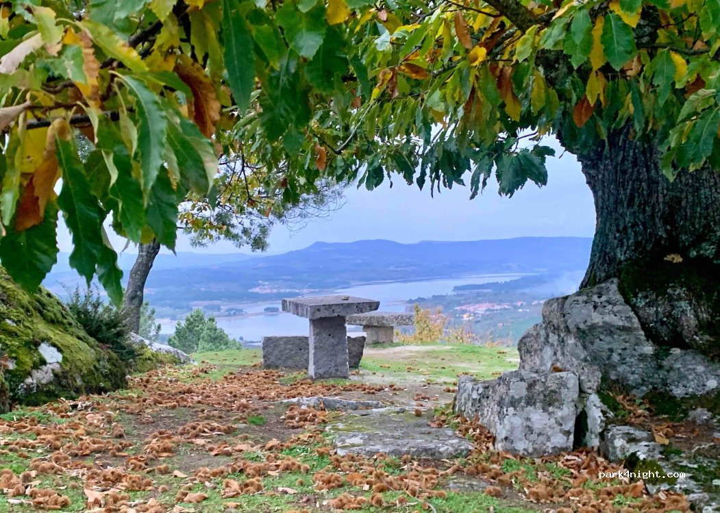 270* panorama mainly to N, covering Távora dam and surrounding villages, beside “N Senhora das Necessidades” chapel (supposed to be illuminated by night). Access via 1,7 km steeped but large stone paved road since EN 226 road. Several picnic tables on top, with shadows. Also wonderful panorama by night. There’s P 50 m before top, to right.