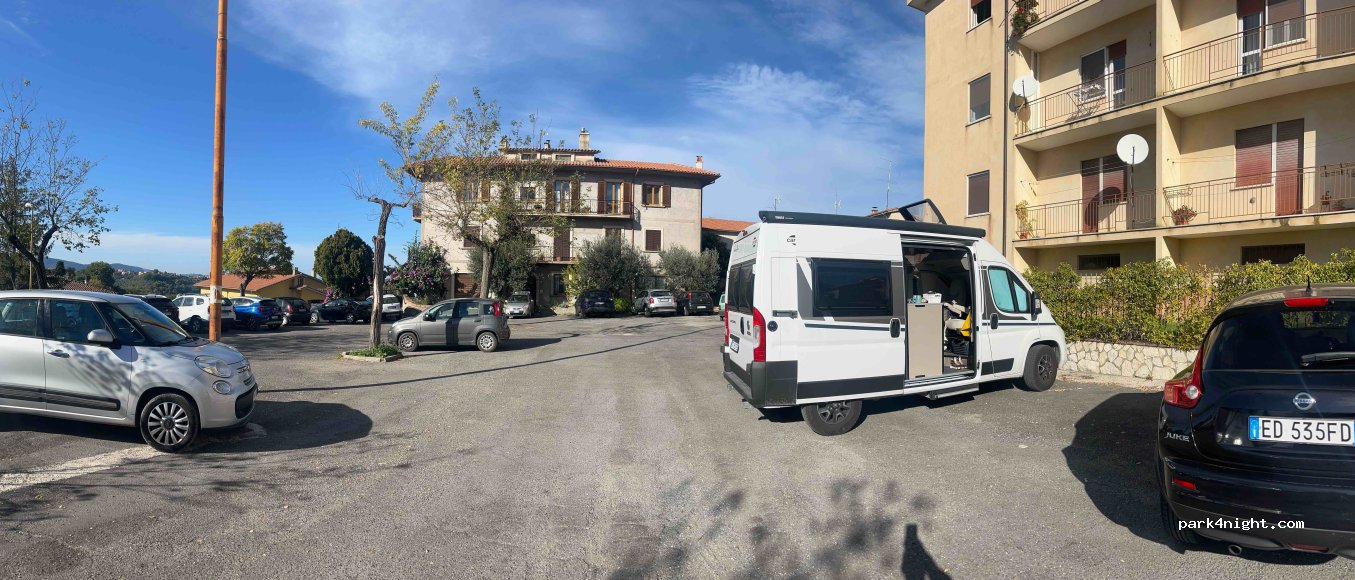 Parcheggio per van ,con il camper altezza ok lunghezza dipende. Silenzioso 50 metri dal centro e dalla sagra della bruschetta