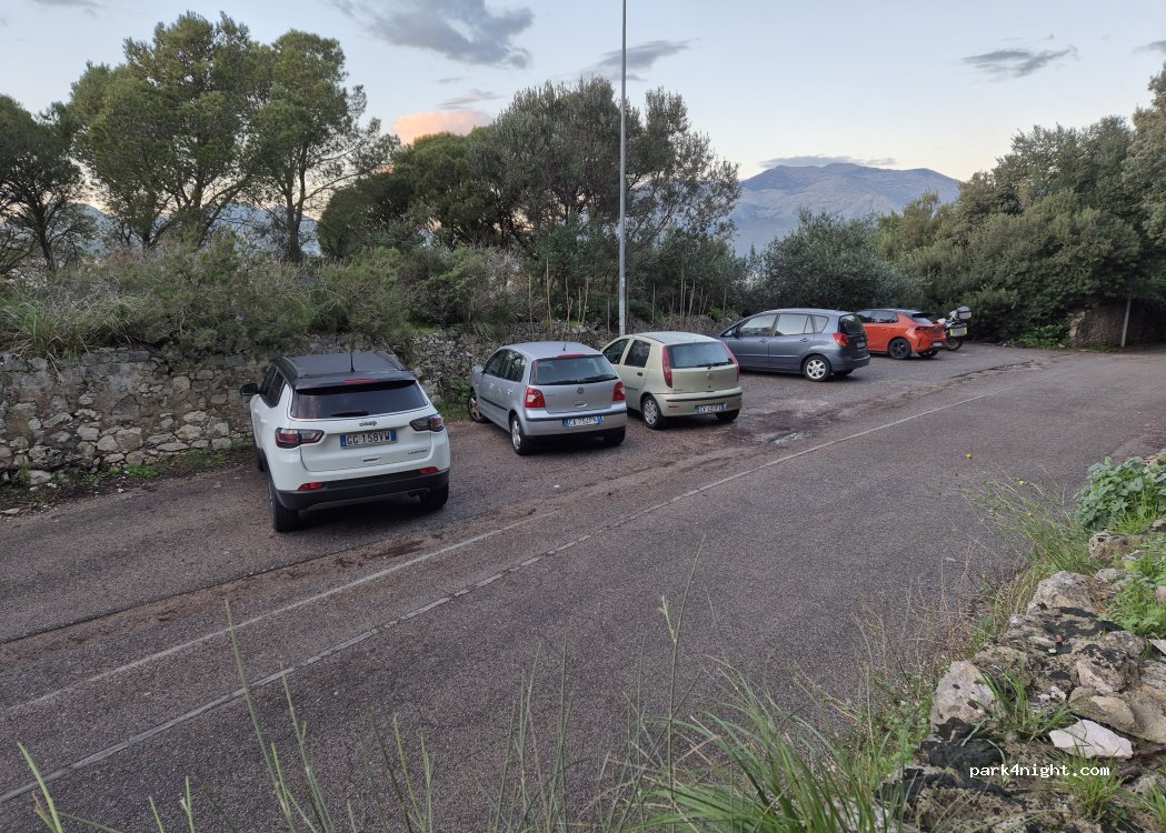 Kleiner Parkplatz an einer Nebenstraße. Von dort sind es 500m bis zur Santuaria Della Ss. Trinita und noch einmal 500m bis zur Aussicht auf die Montagna Spaggiata. Andere Wanderungen möglich. 3 Plätze für größere Wohnmobile. Die anderen Plätze sind zu schmal.