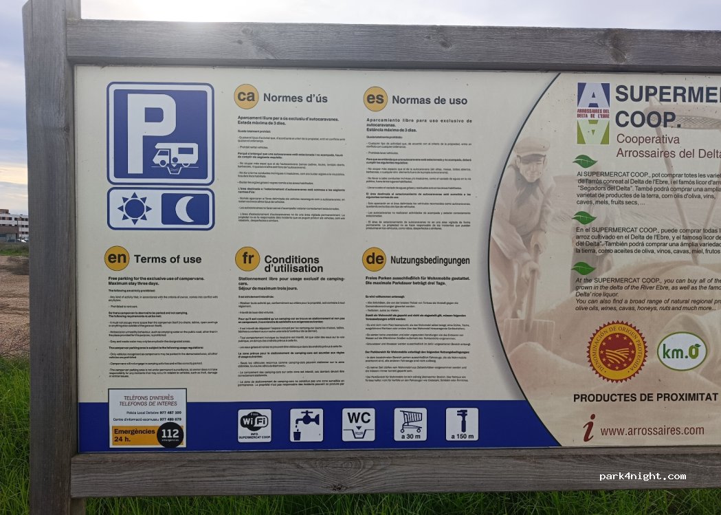 Slept there 3 nights ago. A local told me that the whole delta area has decided to shut down their free aires to get people to use a few paid spots. This spot is being closed, but the sign is still up and she said nothing will happen. The lock on the fresh water tap does nothing. You can still fill up. The entrance has changed. You now drive through the gas station. There is no longer wifi.