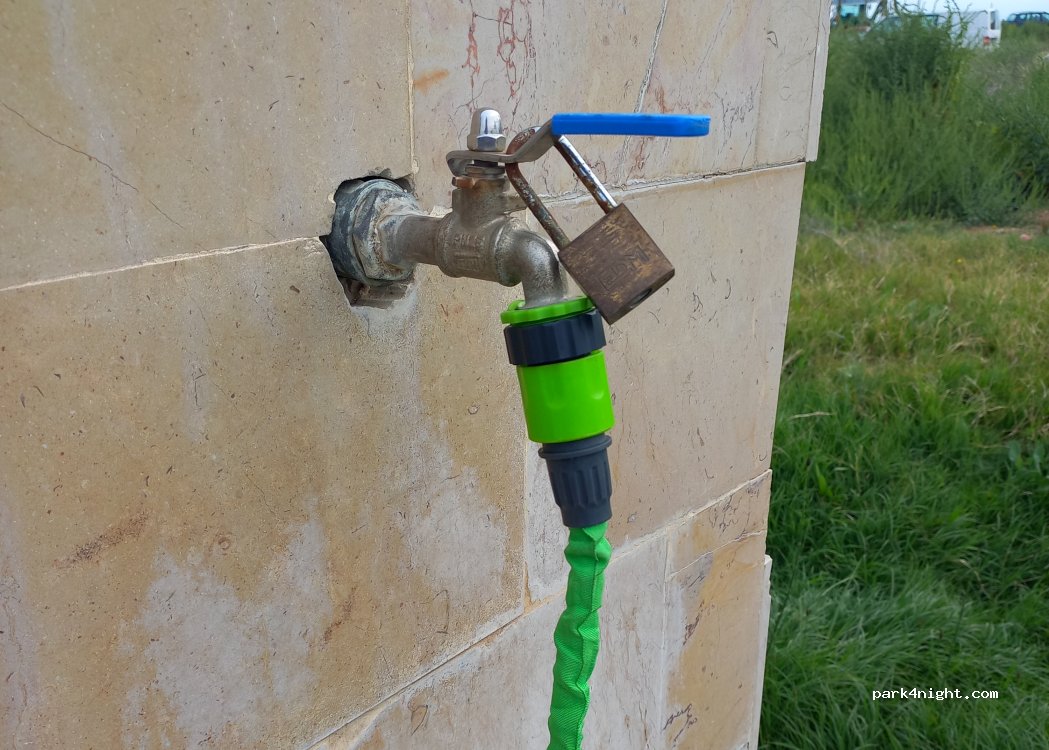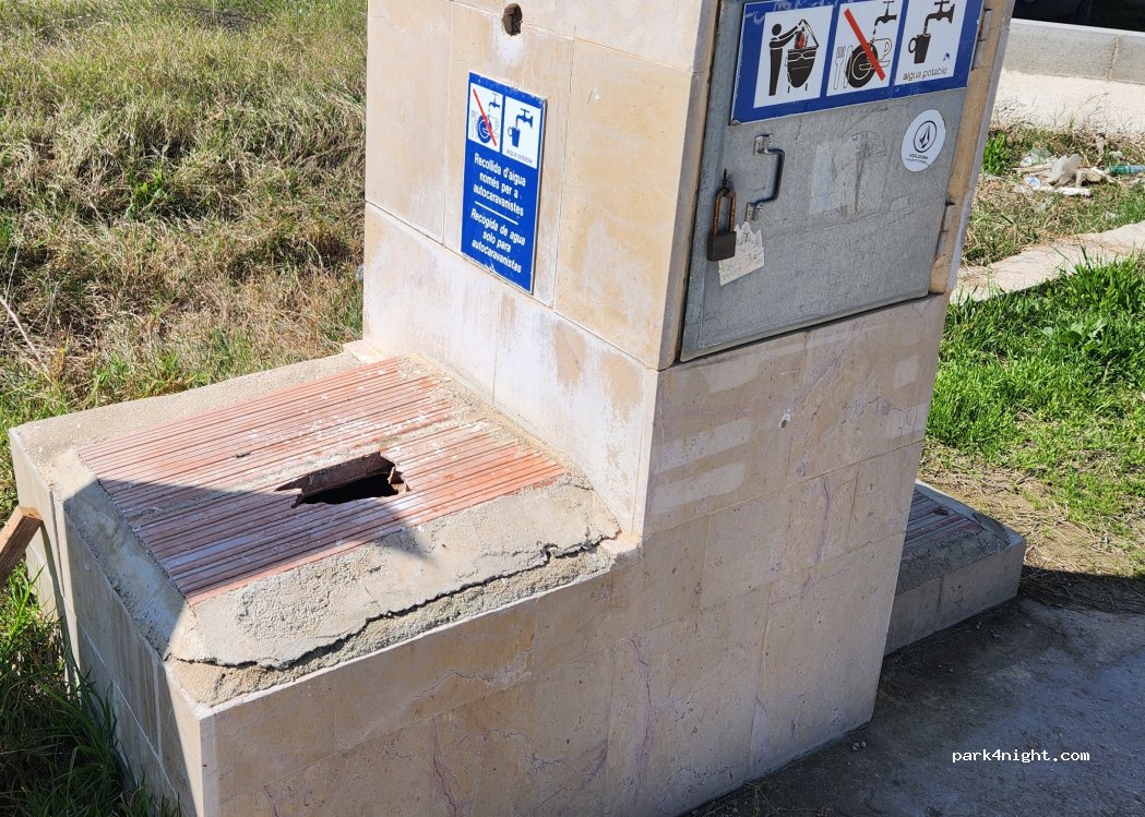 Hoy 18-06-25 está funcionando. Descargamos aguas negras y cargamos agua potable sin problemas. El grifo del agua tiene candado pero no cumple su función, parece más disuasorio. La única Contra que veo es el desague de casete tiene una reja para sólidos grandes y se junta mucha porquería.