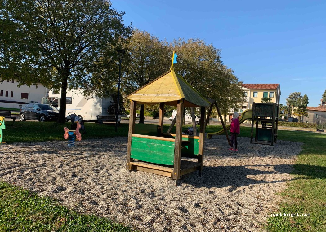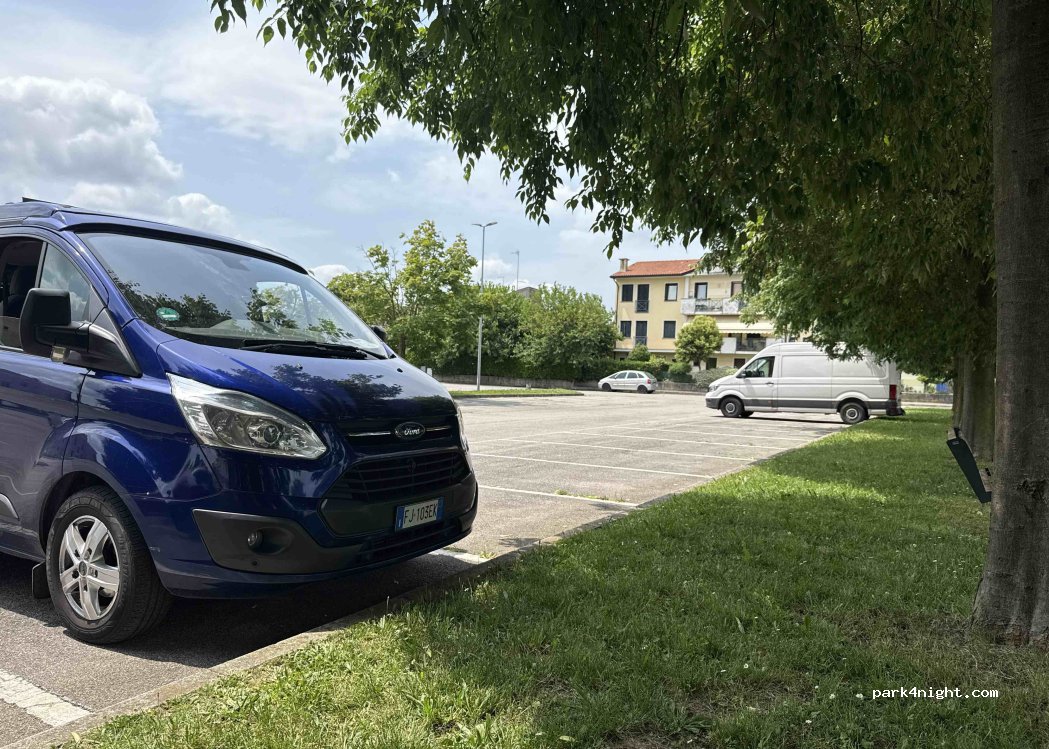 Nuit calme, proche de l’église, réveil à 7h en musique. Plaine de jeux sympa pour les enfants. Terrain plat. Une trentaine de places voitures, en hors saison pas de souci pour CC, à voir en haute saison.