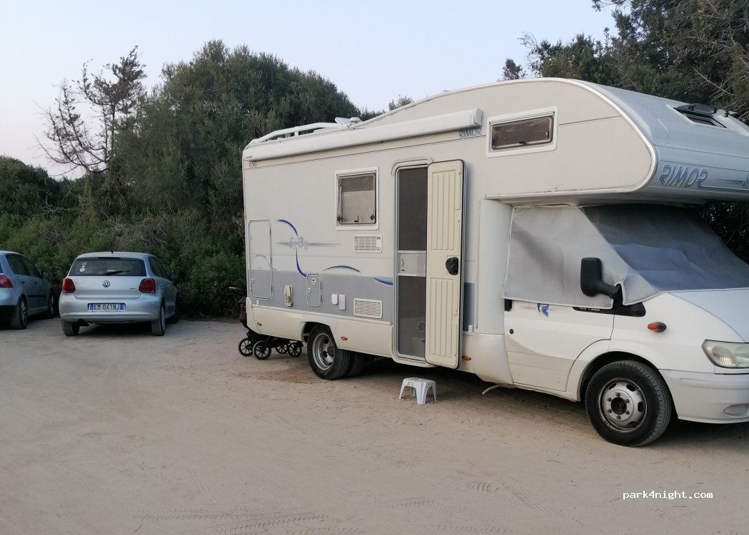 posto tranquillo, ovviamente in piena stagione, essendo il parcheggio piccolo, è difficile trovare posto. per dormire una notte ok, occhio alle zanzare. ci sono adesivi in giro che scoraggiano i camperisti a sostare lì, ma chiedendo in giro mi hanno detto che non c'erano problemi.