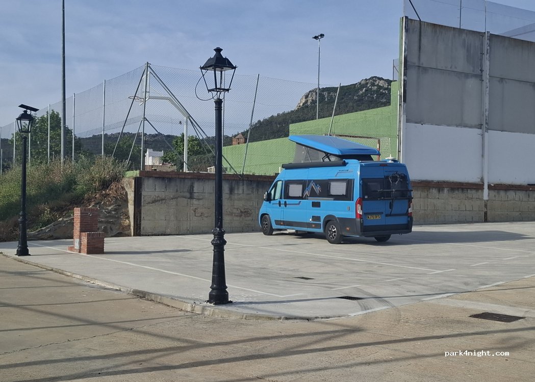 De camperplek aan de rand van het dorp is heerlijk rustig gelegen met zicht op de bergen. Zwart en grijs water via afvoer, schoon drinkwaterkraan heeft een metalen gardena aansluiting gekregen, dus je kunt je slang er zo opklikken. Om de hoek vind je alle afvalcontainers. In de nacht voldoende verlichting. Plaatsen zijn niet vlak! Op een paar minuten lopen een leuke dorpsbar met lekker eten!