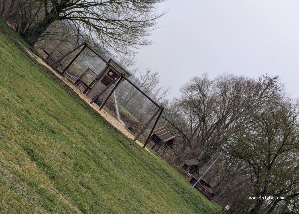 Großer Parkplatz direkt am Spielplatz und Wasser, schöner Angelsteg vorhanden, im Dezember ist es relativ ruhig trotz Hauptstraße ca 50-100m weiter
