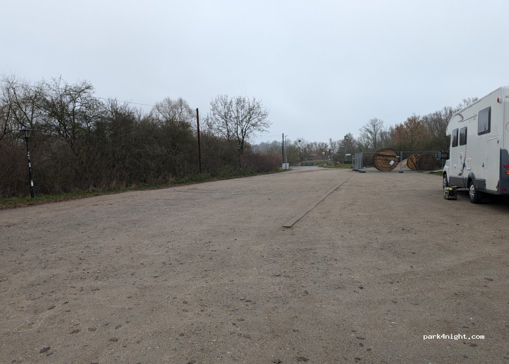 Grand parking juste à côté de l'aire de jeux et de l'eau, joli quai de pêche disponible, en décembre c'est relativement calme malgré la route principale à environ 50-100m
