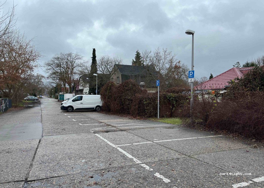 Einfacher Parkplatz in einer Seitenstraße. Eher ruhige Straße, da von 22-06 Uhr auf der Hauptstraße 30 km/h gefahren werden darf. Fahrzeuge sollten nicht länger als 6 m sein, da es reguläre Parkbuchten sind. Ein Rewe und Restaurants sind gleich um die Ecke.