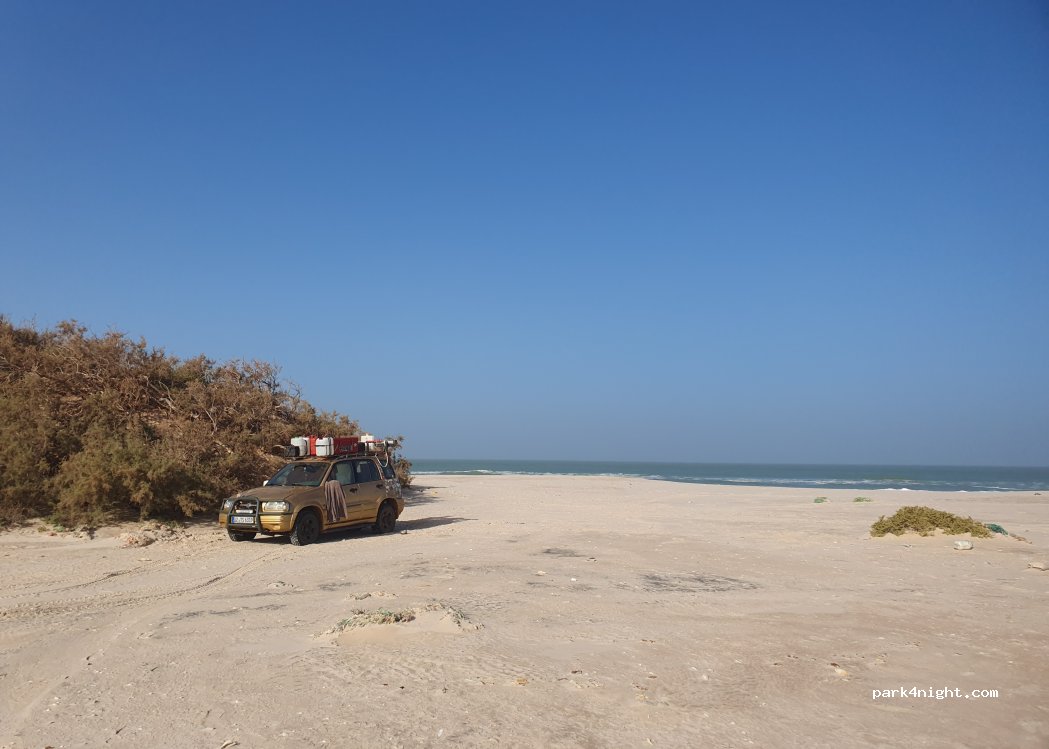 Suivez le chemin indiqué sur Google Maps en sortant de la route principale. Il semble qu'il y ait pas mal de voitures qui y circulent, facile à suivre. Sol dur quand il n'a pas plu, peut-être faire attention après la pluie. En 2 roues motrices, vous pouvez monter jusqu'aux dunes et vous y garer, en 4 roues motrices, vous pouvez parcourir environ 30 m à travers les dunes et vous garer directement sur la plage. Personne n'est passé, juste quelques bateaux de pêche. L'eau était magnifique, claire et propre. Plage incroyable, large et vide, quelques détritus dans les dunes. Belle nuit tranquille avec juste le bruit des vagues.