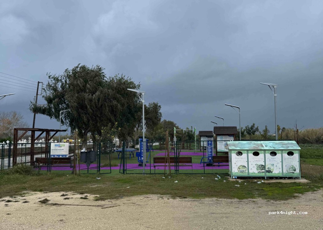 Gran oportunidad de deportes al aire libre para entrenar en un amplio aparcamiento. Con campo de fútbol. Posibilidad de carga de energía con puerto USB (solar). Contenedores de basura disponibles.