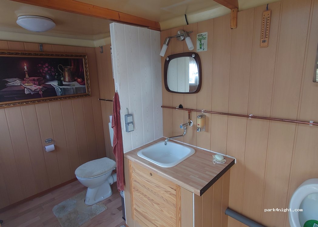Der Stellplatz ist sehr schön. Es gibt eine Toilette mit Waschgelegenheit und auch eine außergewöhnliche Dusche. Die Dusche ist eine Telefonzelle, super Idee. Alles sehr sauber. Es gibt Ver- und Entsorgung und Strom. Auch Sitzgelegenheiten sind vorhanden. Der Betreiber ist sehr nett. Hinfahren lohnt sich. Wir können es nur empfehlen! Ein echtes Outdoor Erlebnis! Wir kommen gern wieder. Südharzer