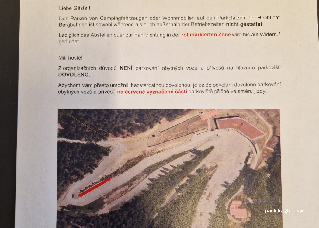 Reservierte Plätze für Wohnmobile. Kein Betrieb auf dem unteren Parkplatz. Übernachtung möglich.