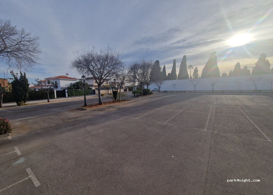 Aparcamiento tranquilo junto al cementerio. Hay una gasolinera al otro lado de la calle con cafetería y lavadoras Revolution.